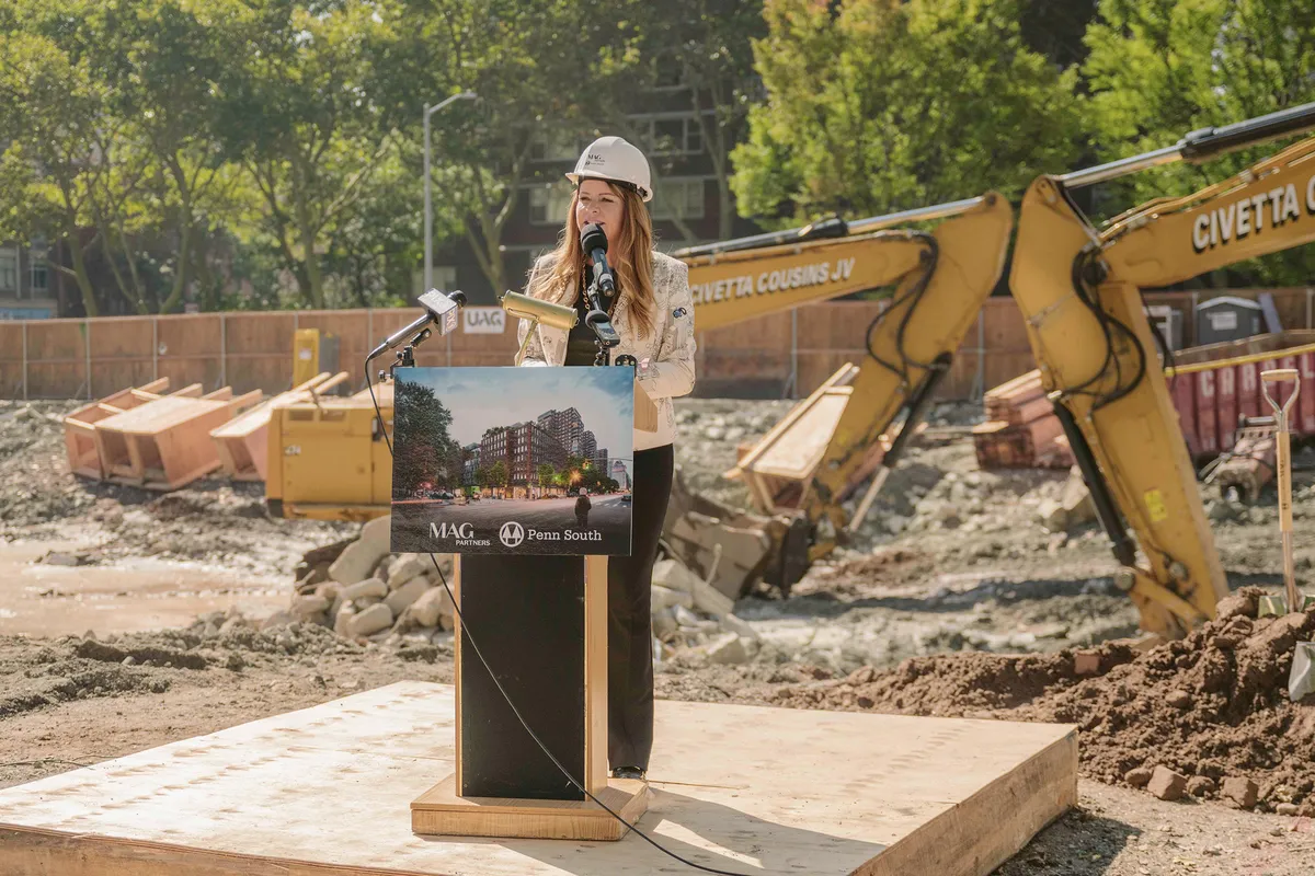 Developer MaryAnne Gilmartin during a groundbreaking ceremony at 335 Eighth Ave. Source: MAG Partners
