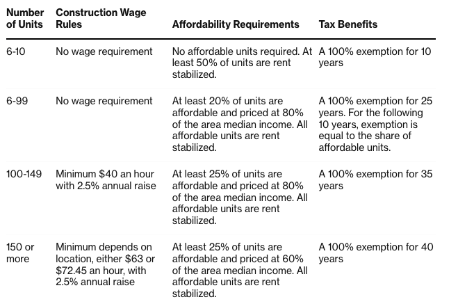 Last year, the New York legislature passed 485-x, which allows developments in New York to receive a tax break if they include a certain number of affordable housing units. It replaces a similar program called 421-a that expired in 2022. However, the new program requires developers of buildings with 100 units or more to pay workers at least $40 an hour — a mandate far more stringent than the prior one.